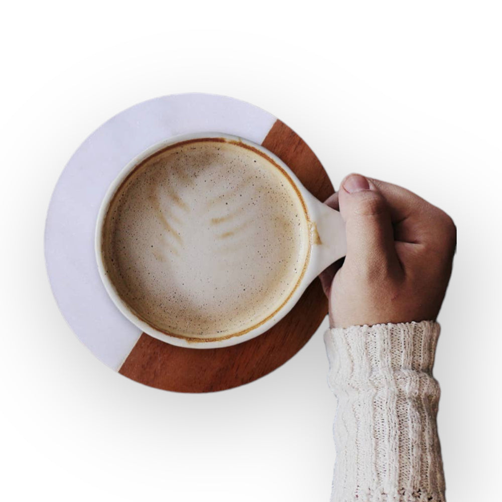 HANDMADE UNIQUE COASTERS - LuxeDesigns drinks coasters feature premium build and quality as each piece is intricately handcrafted from sustainable acacia wood and marble. Featuring a very unique and modern wood and marble two-tone color.