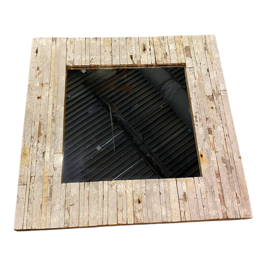 This exquisite handmade Rustic Mirror is crafted from boat wood and is a perfectly captivating piece of art. The unique, one-of-a-kind design with its natural patina and distressed charm will quickly become an eye-catching addition to any room. Its rustic composition brings to mind images of the sea, nostalgia and adventure making it a piece to be treasured for years to come. The mirror serves as a reminder of the power and beauty of nature, as well as a unique conversation piece for any décor.