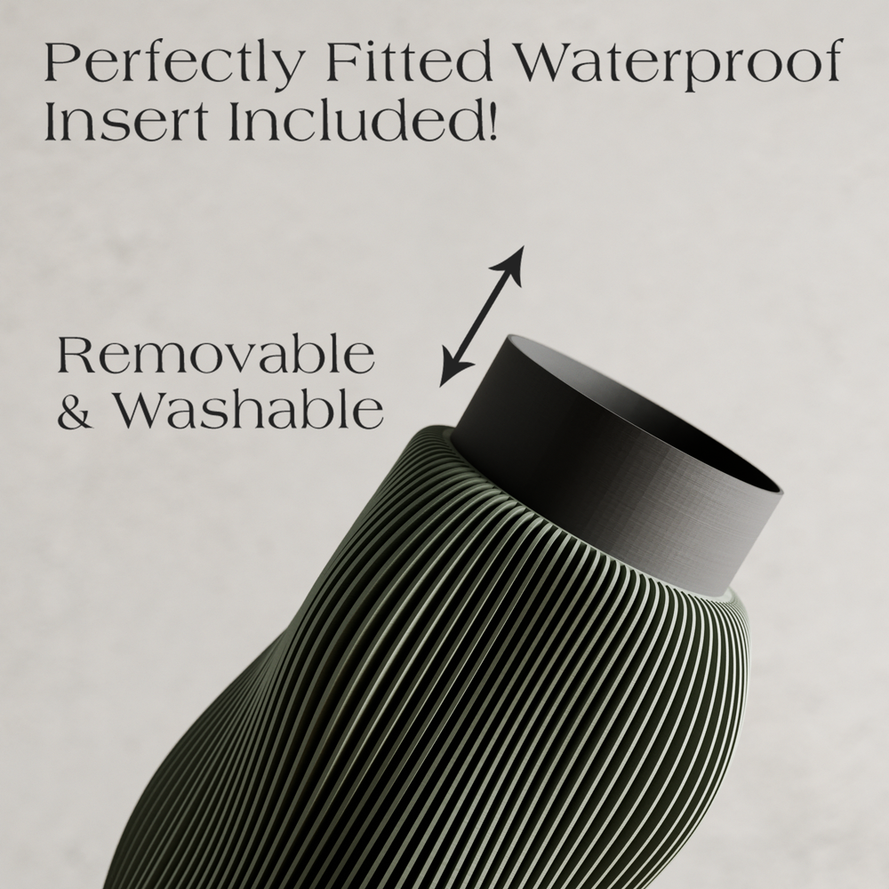 Note: If planning on using with fresh flowers and water, include the optional waterproof insert made from a glossy black recyclable polycarbonate.